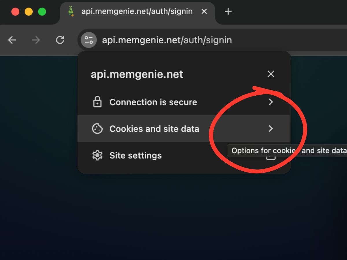 Click the "Cookies and site data" button