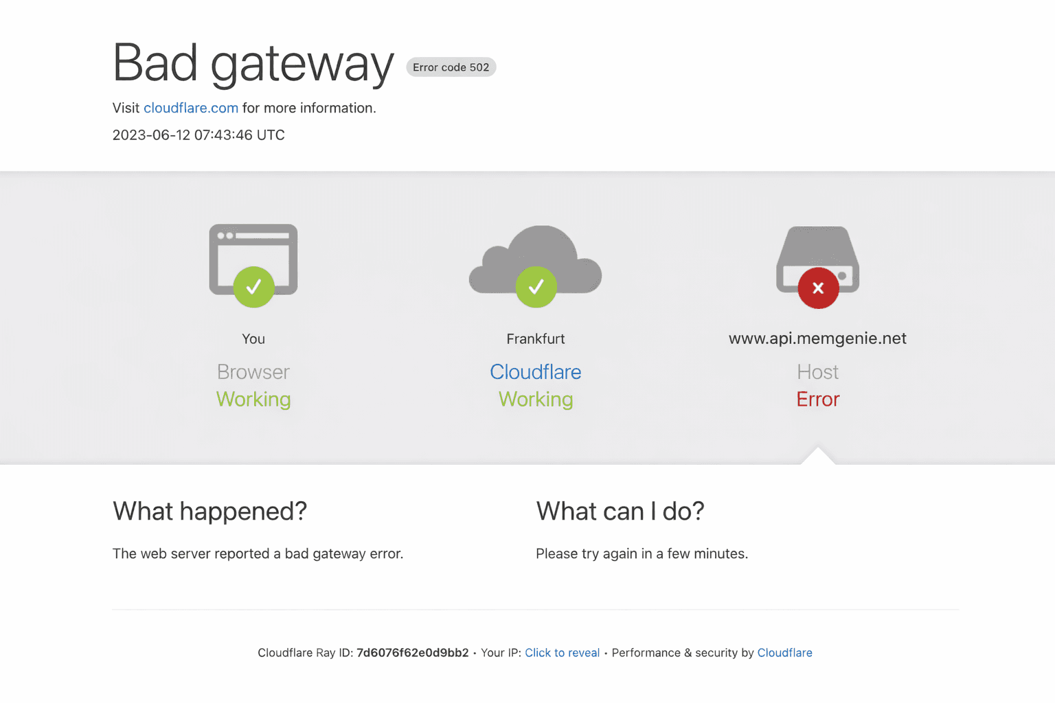 "Bad Gateway" Cloudfare Error