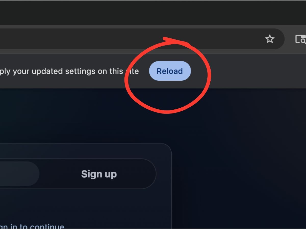 Click done, and then reload the website