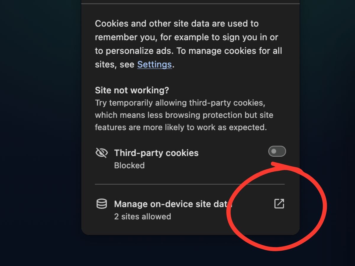 Click the "Manage on-device site data" button